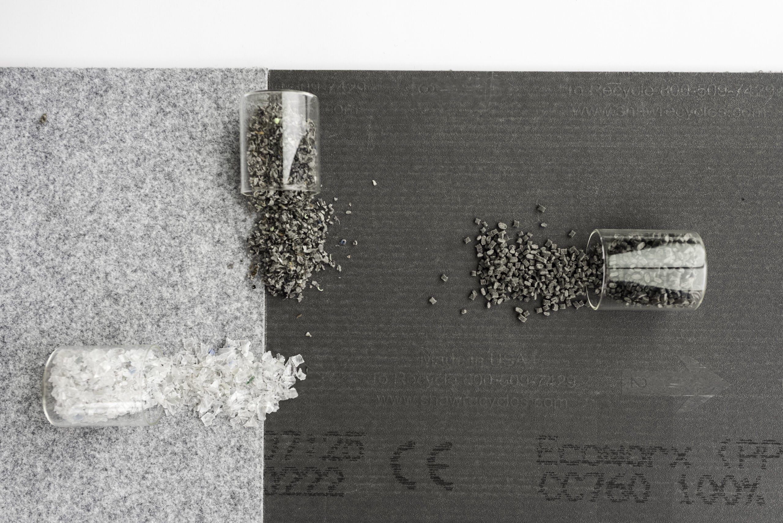 The carpet tiles utilize EcoSolution Q100 yarn, which contains 100 percent post-industrial recycled content. The PET layer in the backing contains 90 percent pre-consumer/post-industrial recycled content, and overall, products can contain up to 68 percent recycled content per square yard.