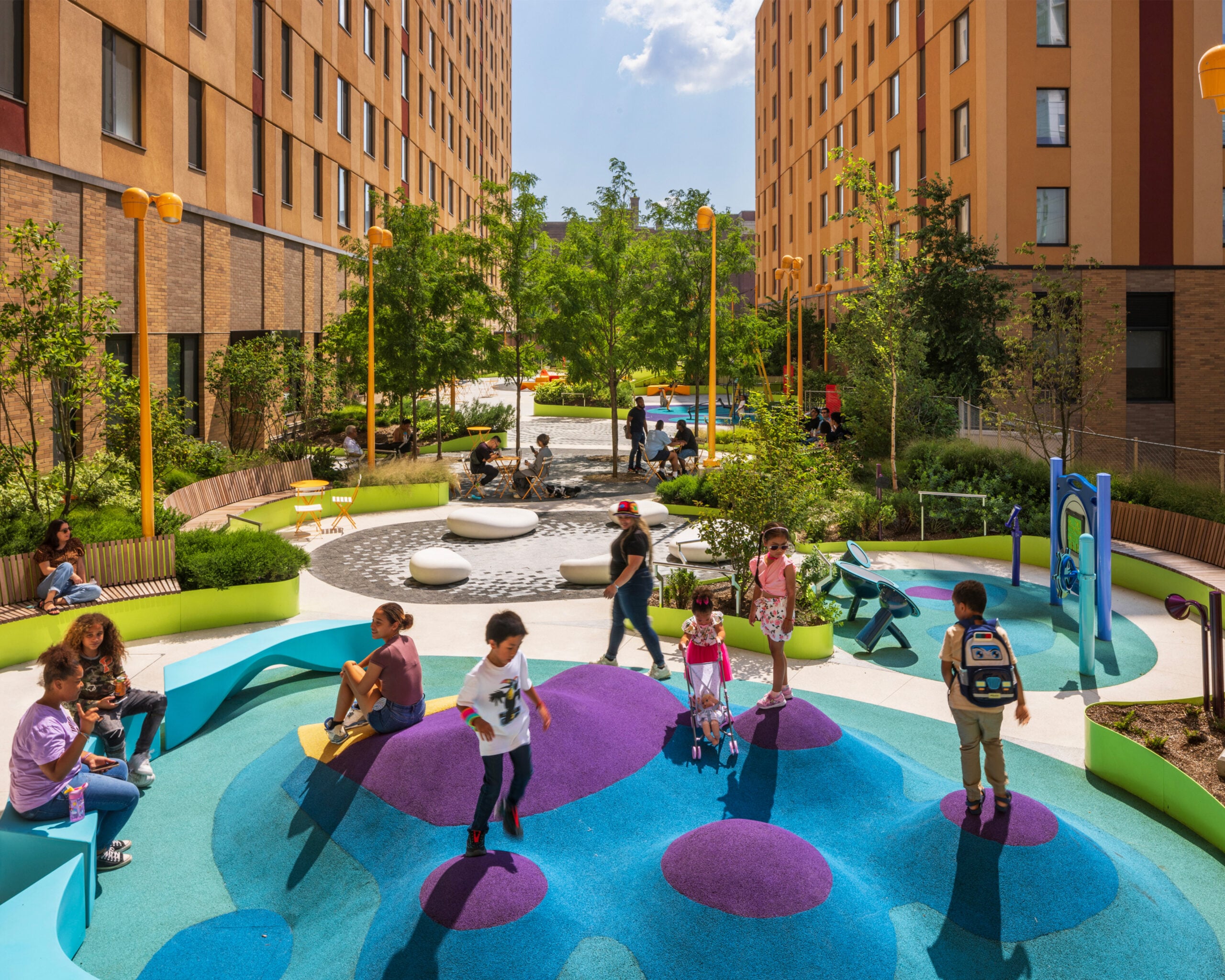 Sendero Verde, North America’s largest Passive House residential building, raises the bar for sustainable, affordable housing. Located in East Harlem, it provides homes for over 700 families, including nearly 100 units for formerly homeless residents, and features a Harlem Children’s Zone school, community gardens with rainwater irrigation, and robust social programming.