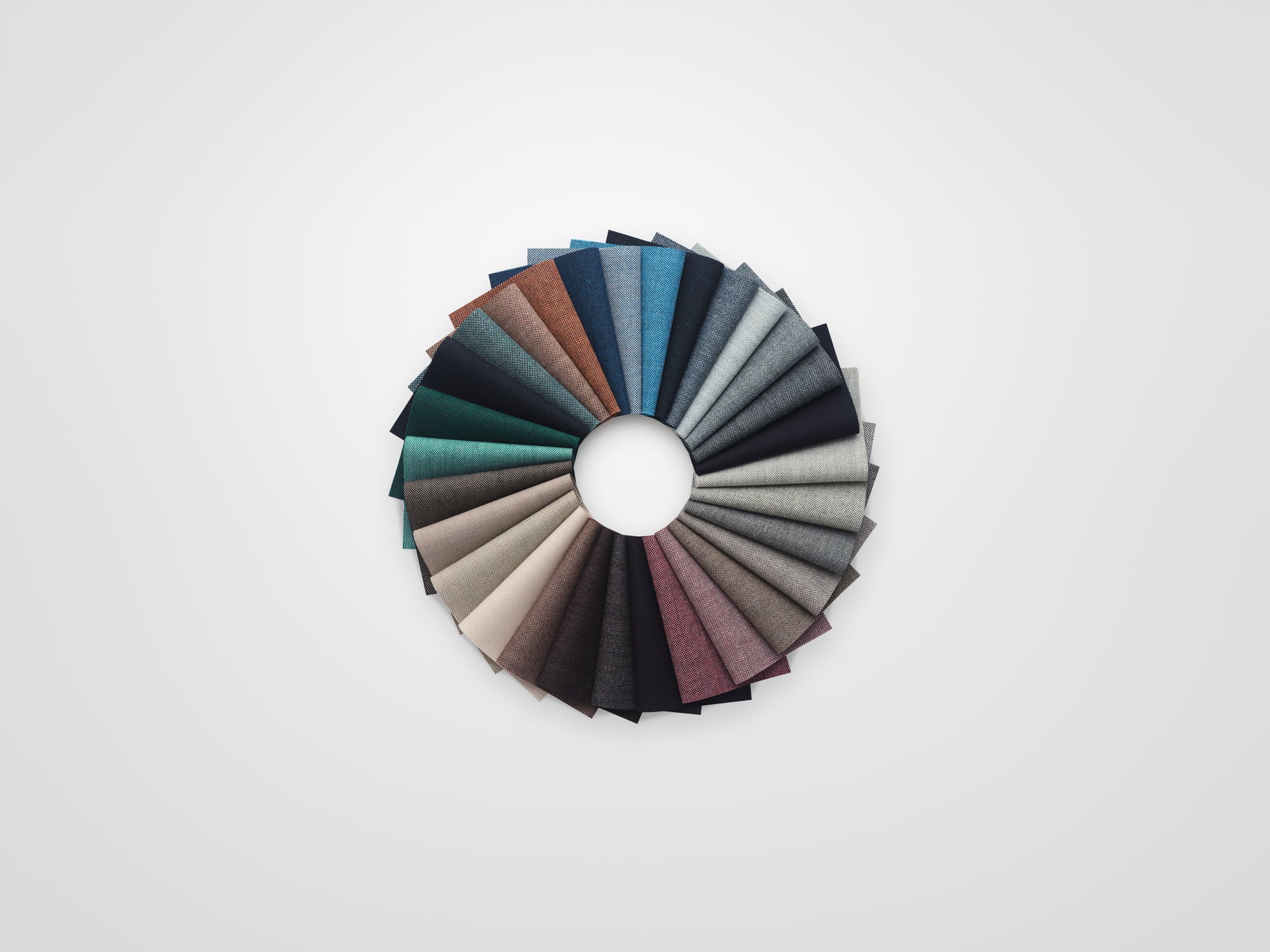 Technicolour, Kvadrat’s new wool textile in collaboration with British designer Peter Saville, is produced entirely in-house at Wooltex. A unique color system creates 30 shades from ten base colors. Wooltex’s vertically integrated process optimizes efficiency and sustainability, using less water, recycling 85 percent of it, and leaving 30 percent of wool undyed.