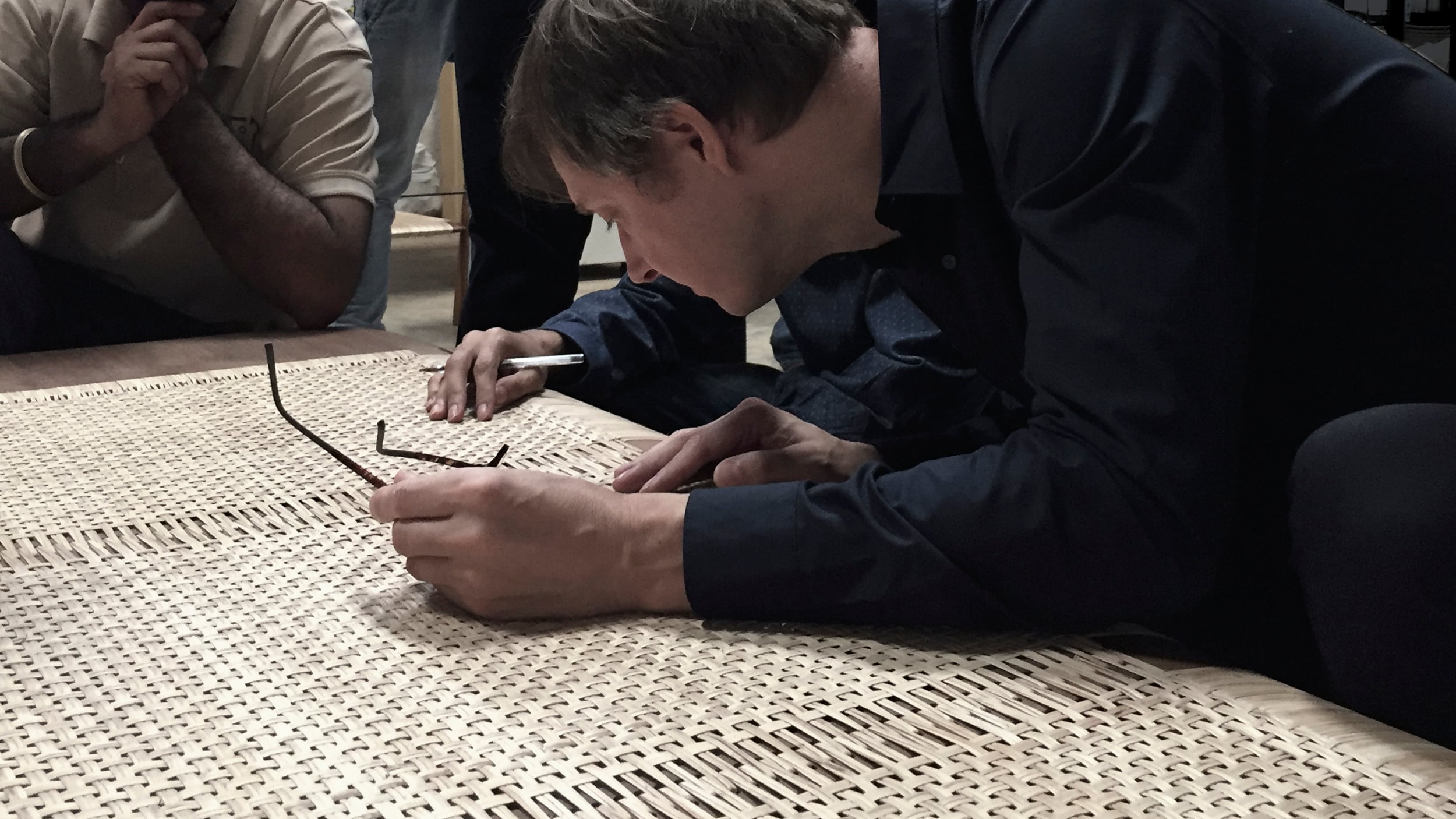 In most industries, R&D is about patents, IP, and product pipelines. At Phantom Hands, it’s about experimentation and shared learning. Formalized in 2020, during the pandemic, the studio’s R&D unit documents what other workshops might discard: videos of failed jigs, voice notes about drying times, scribbled finishing recipes, photographs of weaves that went wrong. Carpenters, upholsterers, finishers, packers, and designers all contribute.