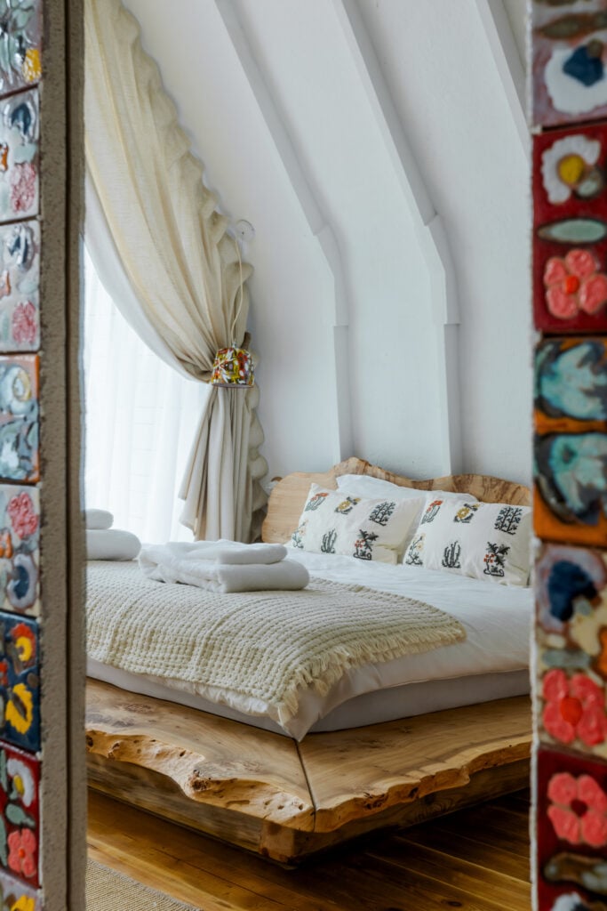 That responsiveness was not confined to design. The process of building, Mirza emphasizes, was a continuous conversation between architects, craftspeople, and site conditions. “Knowledge exchanges happened daily—about joinery details, clay mixes, or how to craft ergonomic furniture from local timber.” Specialists trained the team in straw-bale and clay plaster techniques, while interiors—ceramic lamps, timber beds, tactile finishes—emerged through collaborations with the local furniture studio Lemnaria and artist Eugenia Burlacenko.