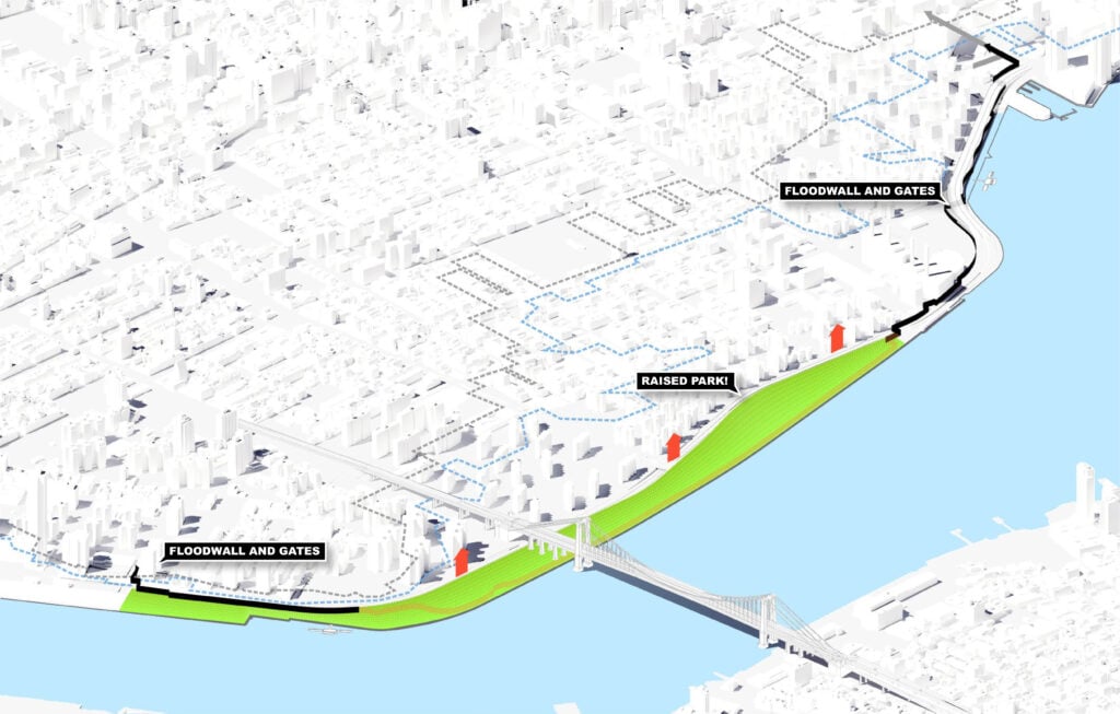 Beyond ESCR’s added infrastructure, the project also formed and deepened the relationship between federal bodies like FEMA and local agencies over the course of a decade. It also helped crystalize a consortium of local design and engineering specialists, from Mathews Nielsen Landscape Architecture, which selected the dozens of tree and plant species, to ONE, which, as Siegel puts it, helped the project “land in the reality of New York City” – not to mention the dozens of community groups, policymakers, and laborers who shaped and helped realize it. It’s a technical, administrative, and logistical muscle that will need to be constantly strengthened as the city races to expand flood resilience and head off the next big storm.
