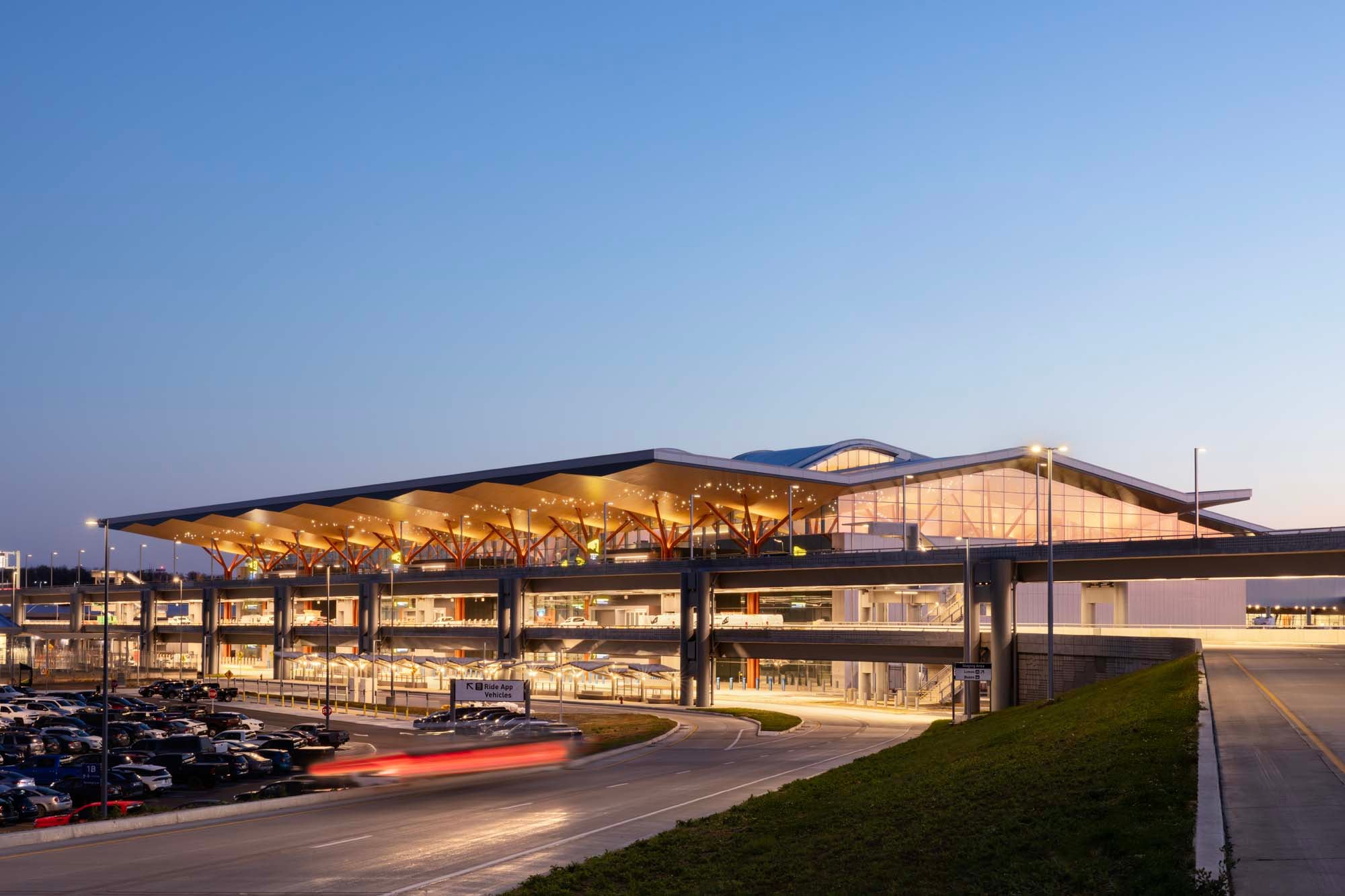 Their new $1.7-billion, 811,000-square-foot landside terminal, which opened late last year, focuses primarily on clarity, comfort, and civic presence—making it closer to a public building than a piece of airline infrastructure. Designed by Gensler and HDR in association with Luis Vidal + Architects (which also renovated the existing airside building with Michael Baker International), the terminal consolidates ticketing, security, baggage claim, international arrivals, and ground transportation into a single, three-level structure directly attached to the existing concourses—eliminating the old terminal and its half-mile people mover.