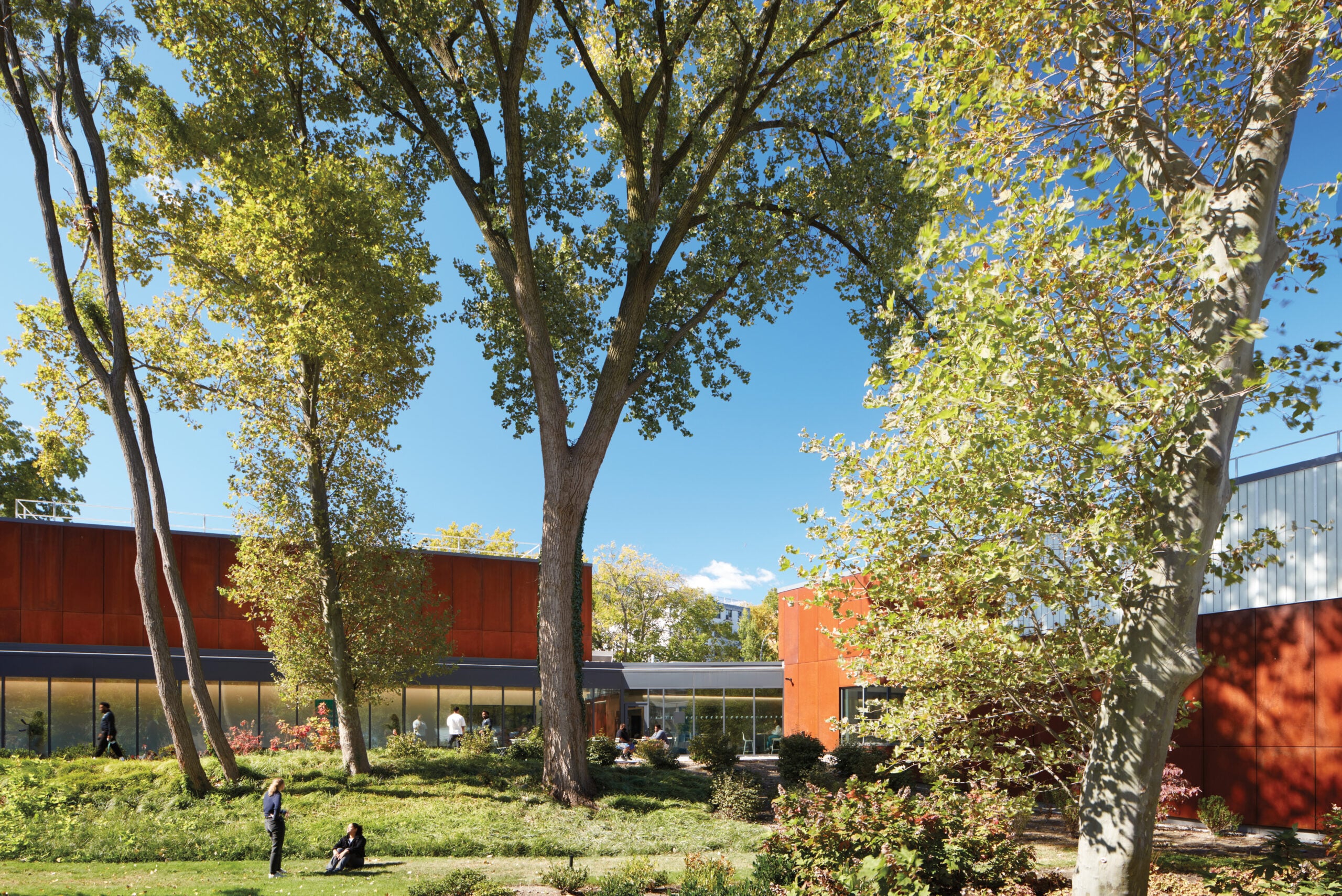 In the case of the YMCA, where we’re essentially in an urban environment in the Bronx, the context became much more subtle and nuanced—and not architectural. The context became a grove of trees over a hundred years old, which is rare for New York City. And a topography of terrain that was challenging—not flat, not paved, but boulders and a twenty-foot drop over a very short distance.
