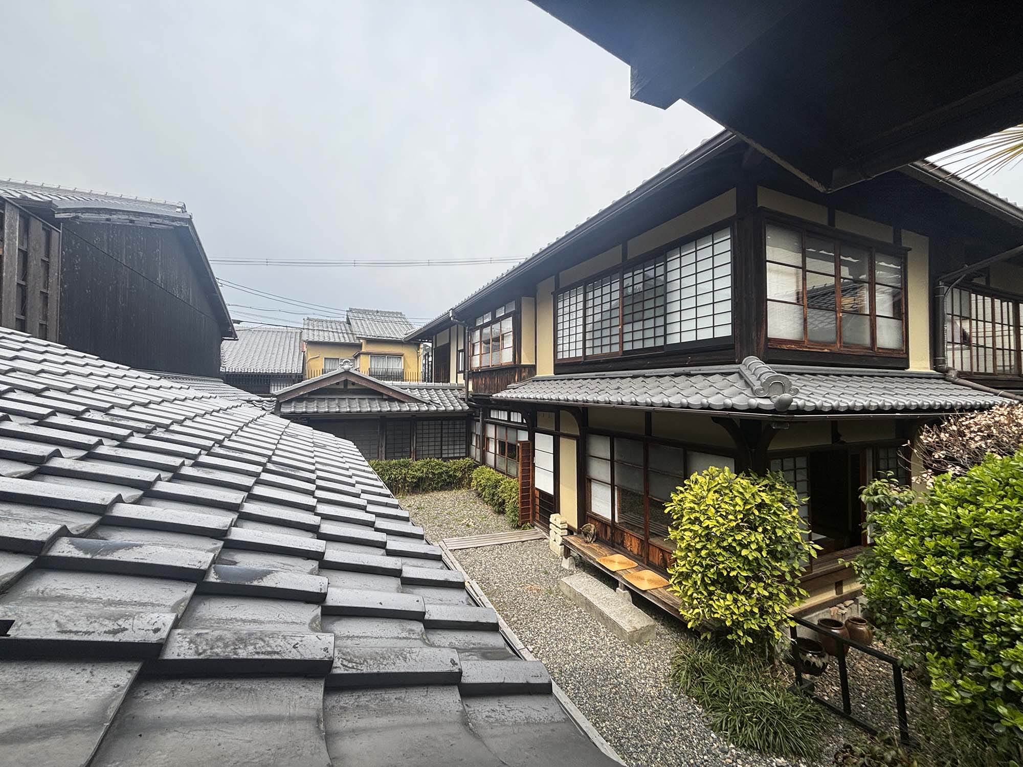 These prints highlight not only the building’s architecture, but the trove of furniture and objects one can find throughout the house—a Bamboo stool that when turned sideways is transformed into a chair for children, barrel-shaped straw stools, squat chairs made from old wooden mortars for pounding ice, an alcove desk, his two potter’s wheels—most of which was designed and made by Kanjirō himself. The drawing even depicts the friendly tortoiseshell house cat that greeted me during my visit, patiently sitting through visitor photoshoots and mewing at me to let her into the house when I re-entered from the courtyard kiln area.
