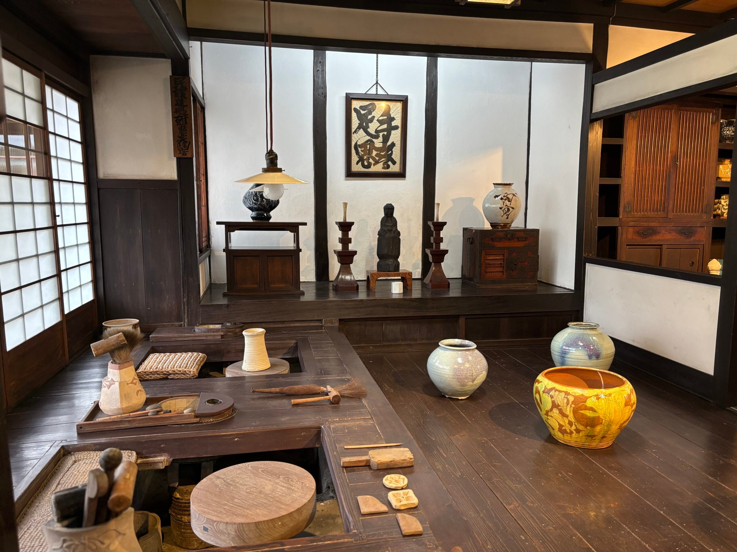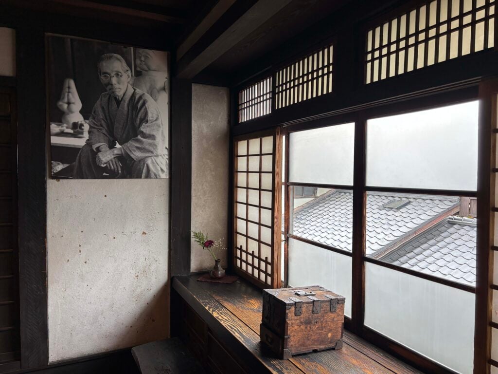 The interior of the home offers about as much explanation as the exterior. In the folk tradition of anonymity and embracing the unknown, few signs exist—in Japanese or English—to tell you where to go, or what you’re looking at. You’re entering someone’s home, after all, and while you will find a few of the expected museum displays and exhibition labels throughout the two floors, I can imagine that the overall experience of the house is much the same as when the artist lived, worked, and fired his massive eight-chamber noborigama climbing kiln here from 1937 until his death in 1966.