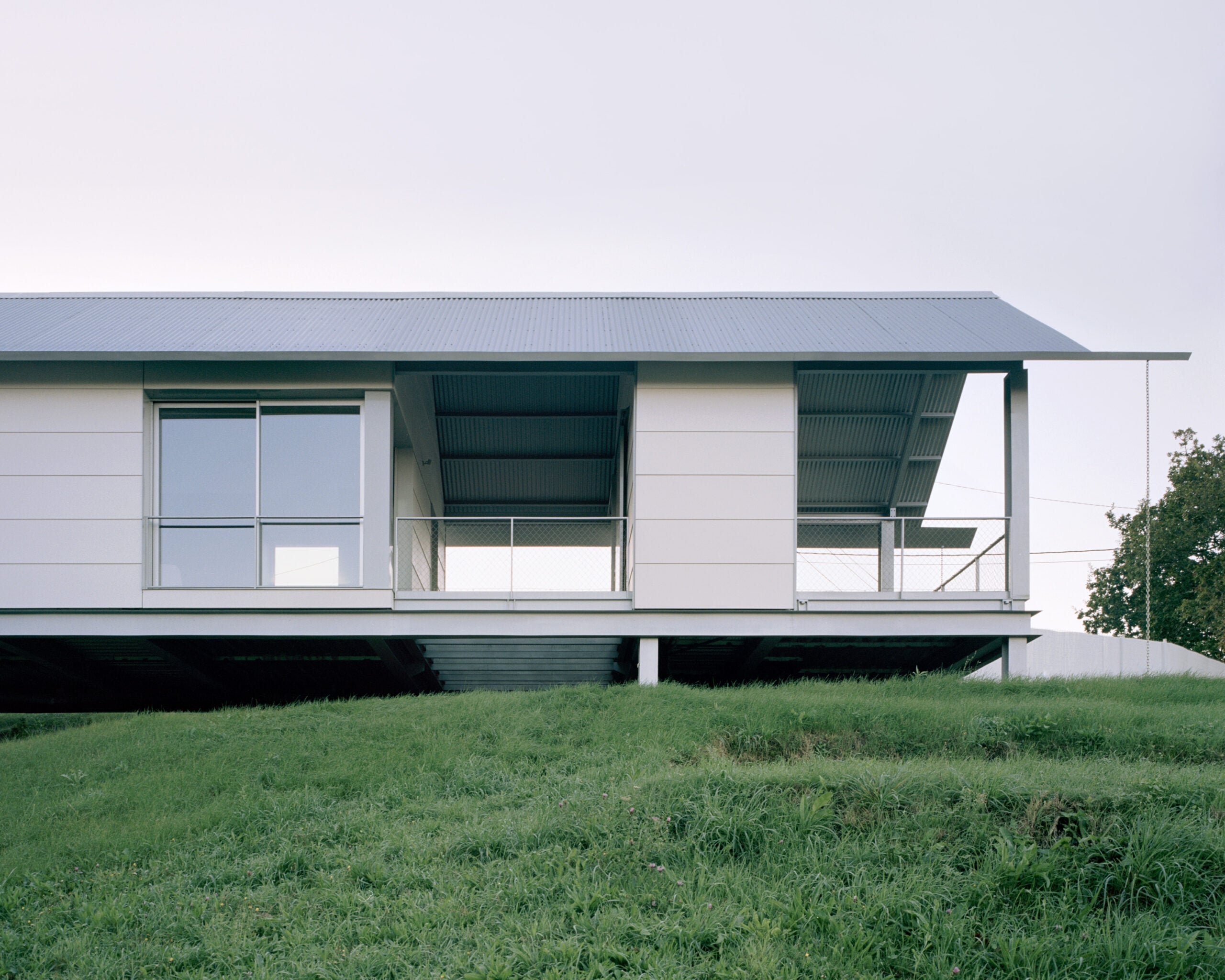 Elevated on piers for a lighter touch on the ground, the house detaches itself from the terrain’s irregularities—a prefabricated hallmark that allows it to be installed almost anywhere. Casa Guadalupe was no exception, its structure hoisted into place by crane.