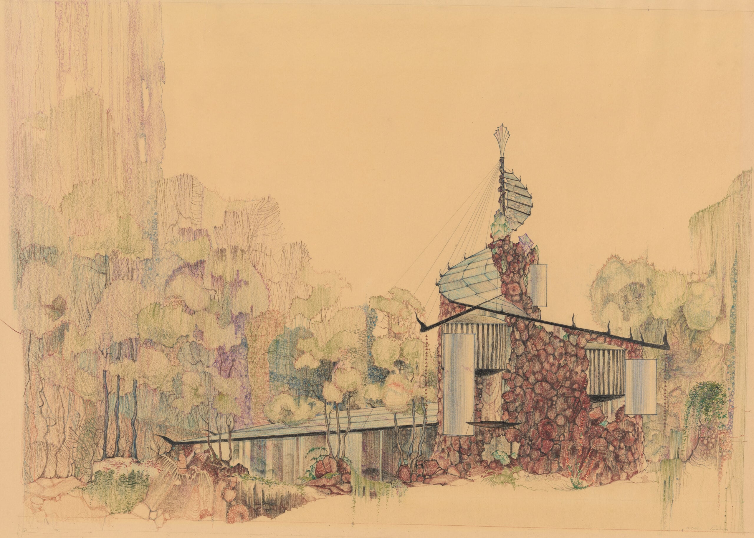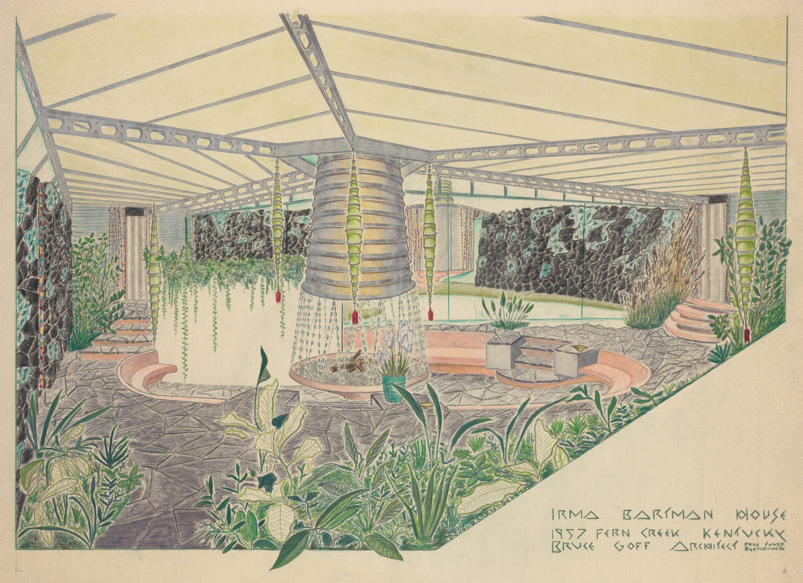 Bruce Goff (1904–1982) was a largely self-taught architect who began as an apprentice in Tulsa, Oklahoma. Though often linked to Frank Lloyd Wright and Louis Sullivan, he resisted the cool detachment of international modernism in favor of something stranger and more personal. Reyner Banham described him as a homegrown hero, someone who viewed America as a native rather than a tourist.