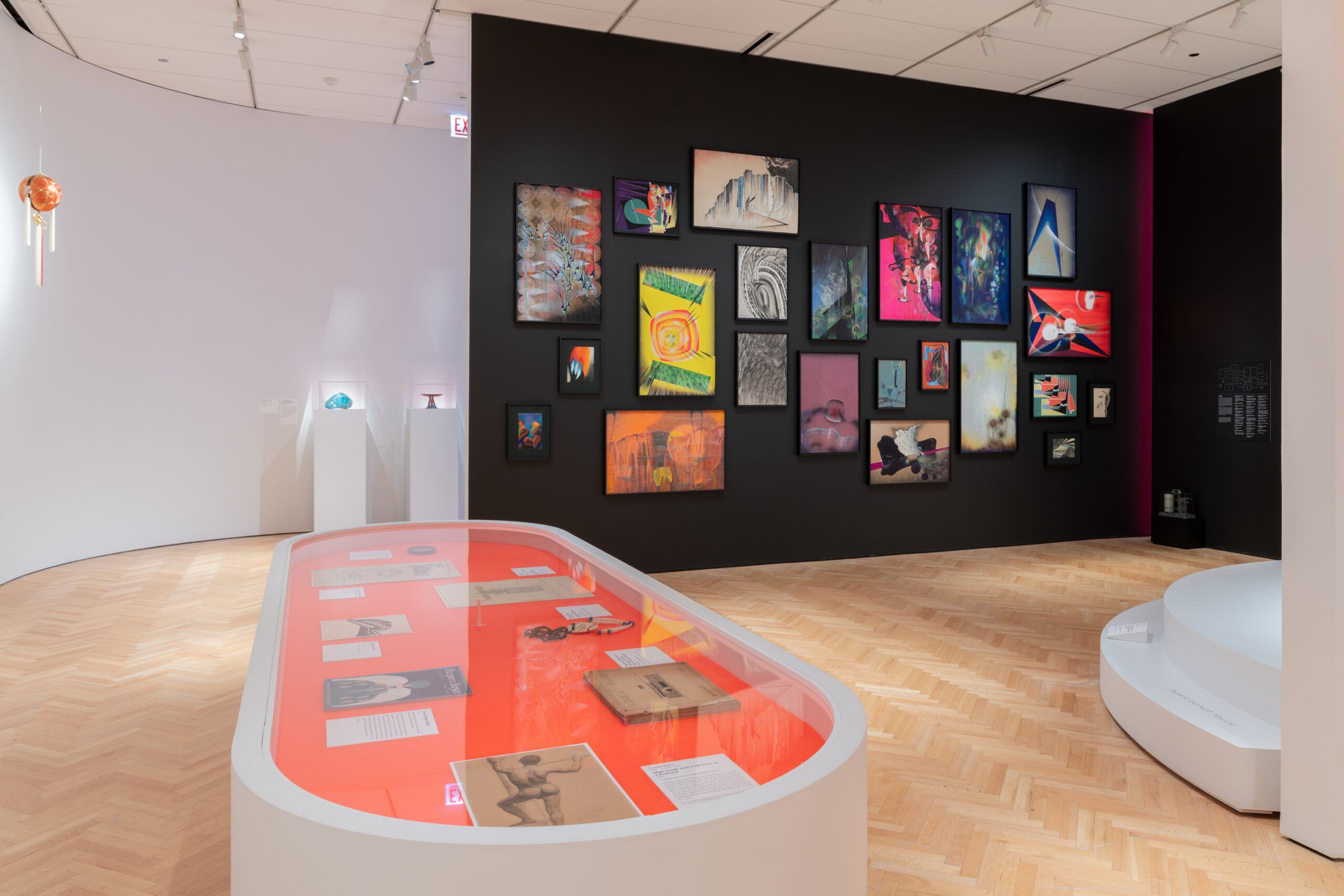 Exhibition design by New Affiliates, a practice inspired by Bruce Goff, translates his designs into the gallery setting with off-axis walls, inverted conversation pit platforms, and colored gradients washing across white surfaces. Goff’s world spills out of the main exhibition, with companion shows staged in other locations throughout the Art Institute (The Japanese Art Galleries, The Modern Wing, and The Architecture and Design Gallery) and beyond Chicago.
